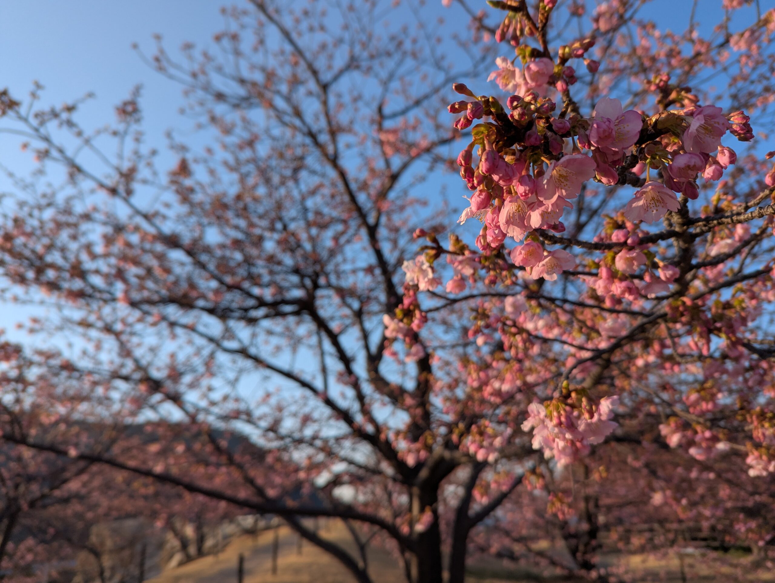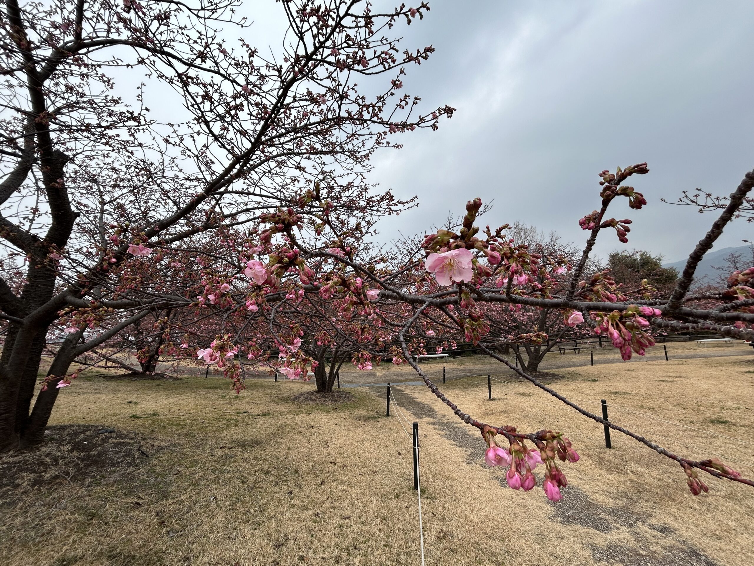 河津桜はつぼみが緑色になっているところが多いです。